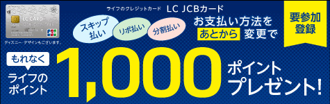 LC JCBカード新規ご入会・ご利用でライフのポイント最大3,000ポイントプレゼント&クレジット決済でライフのポイント実質3倍!